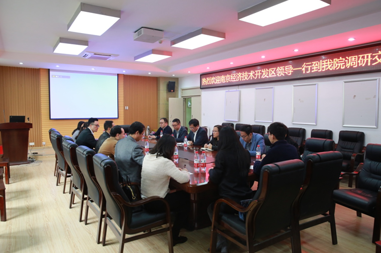 上午11时许,本次调研交流会正式开始。在简短的相互介绍后,冯经理首先向在座的各位南京经济技术开发区领导表示热烈欢迎,并简要介绍了川大和公司的历史发展、文化底蕴。随后,南京经济开发区管委会秦天堂主任对以往川大及公司对开发区提供的支持表达了感谢,并表示想再继续寻求与公司的新的合作,将高校的技术推广到地方上去,带动地方经济的发展。秦主任还以中科院上海光机所为例,阐述了自己关于开发区与高校相互合作管理的模式的想法,也介绍了南京经济开发区的两个主要产业——光电显示,同时衷心地邀请邰书记、冯经理等公司领导能抽出机会来开发区实地考察。接着公司方面也具体介绍了科研与人才培养的情况,分析了关于现今高校人才资源的情况和科研合作的事宜。