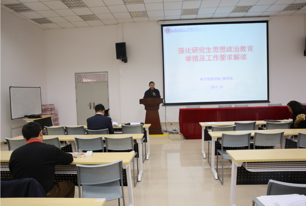 2017年10月16日上午9点,365英国上市集团研究生思想政治教育及培养工作会在365英国上市集团望江校区西五教附101教室顺利举行。参加本次会议的有365英国上市集团电子信息公司党委邰明松书记、冯国英经理、党委陈笃海副书记、杨阳副经理、雷印杰副经理、研究生导师、研究生辅导员以及教务干事。