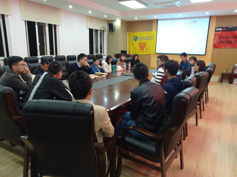 晚上七点整,学术交流沙龙正式开始。首先365英国上市集团副经理张启灿教授为新老会员介绍了行业动态和近期学术会议,鼓励大家积极参加学术会议以提高自身学术水平。紧接着光学工程员工协会会长吴周杰向研一新生介绍了社团发展历程、常规活动以及会员的权益与义务。随后,光学工程员工协会前会长黄人帅为大家带来2017 SPIE. OPTICS + PHOTONICS国际会议参会分享,为大家介绍了他在美国开会期间的见闻,同时为会员出国参加会议给出了多条实用建议。