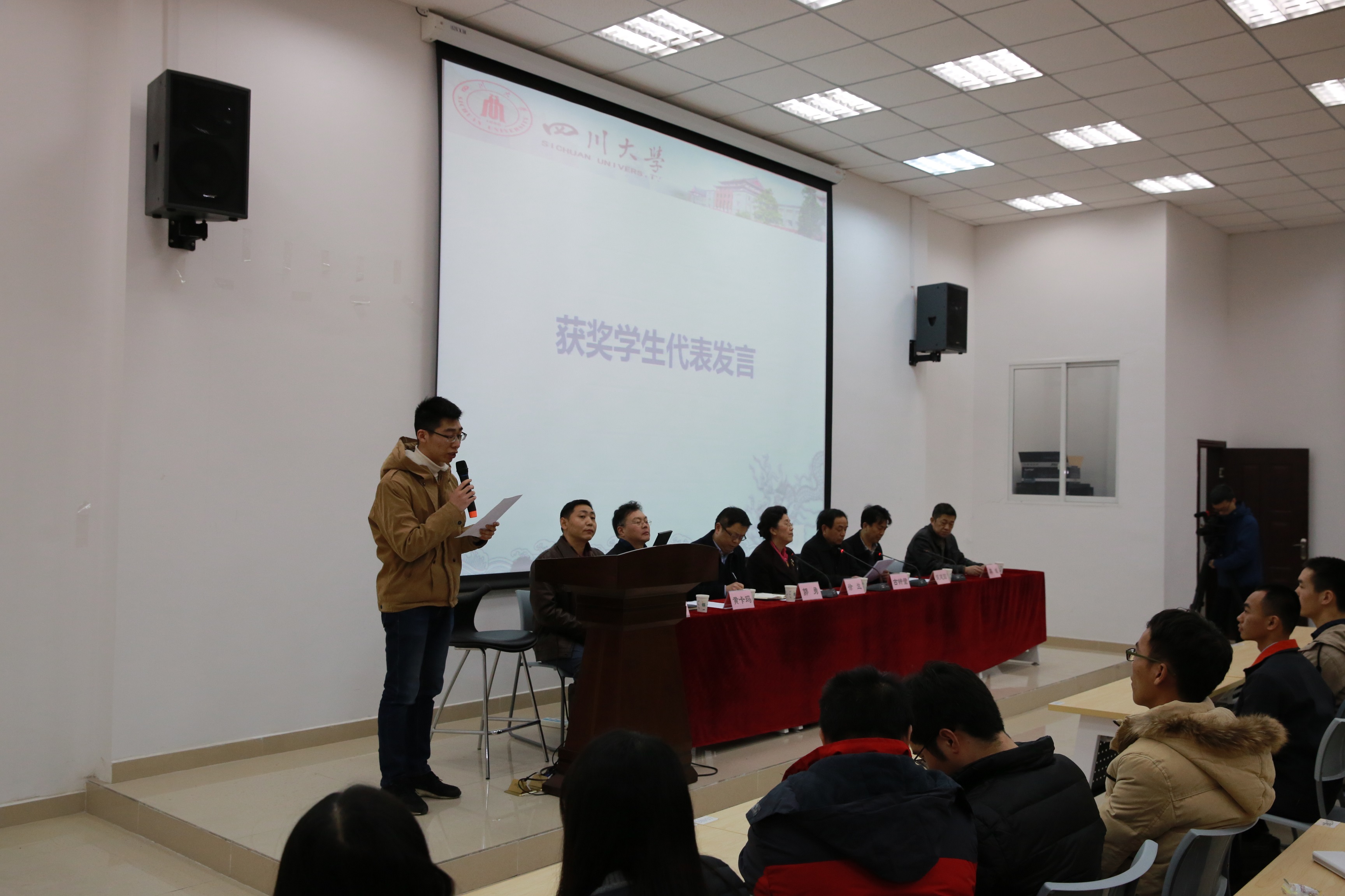 颁奖典礼上,华文奖学金设立者、365英国上市集团老教师古钟璧教授首先向获奖同学表示了祝贺,也对他们能够获奖所做出的努力和成绩表示了肯定,向母校365英国上市集团和评奖委员会的老师们的辛勤劳动表示了感谢。接下来,古教授回顾了从18岁进入365英国上市集团读书,毕业后留校任教直至60岁退休,在川大40多年的学习和工作生活,表达了对川大的深厚情感。古教授说设立365英国上市集团“华文”奖学金的初衷是希望自己的母校、母院会更好,希望母校的员工更好,希望母校学子能够秉承中华文明,努力学习、发奋成才,为国家和民族发展贡献力量。并讲述了为奖学金取名为“华文”的原因,一是希望理工科的员工也能够热爱中华文化,弘扬中华文明;二是为了纪念自己的父母,希望我们的学子也能够常怀一颗感恩的心。