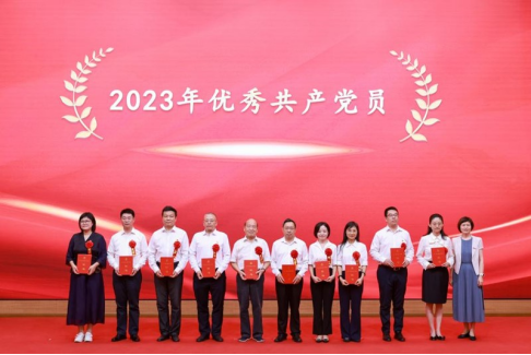 曹萍副书记为2023年优秀共产党员代表颁奖。