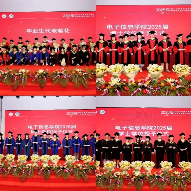6月11日上午9点,2025届员工毕业典礼暨学位授予仪式在望江校区东三教演播厅隆重举行。公司党委书记彭舰,经理杨阳,党委副书记廖勇明,副经理雷印杰、卿粼波,教师代表曹益平教授、滕奇志教授、杨鑫松教授、汪莎研究员、朱铧丞教授、卢萍副教授、钟哲强副研究员,以及2025届毕业生及毕业生家长代表参加此次典礼。雷印杰副经理主持典礼仪式。