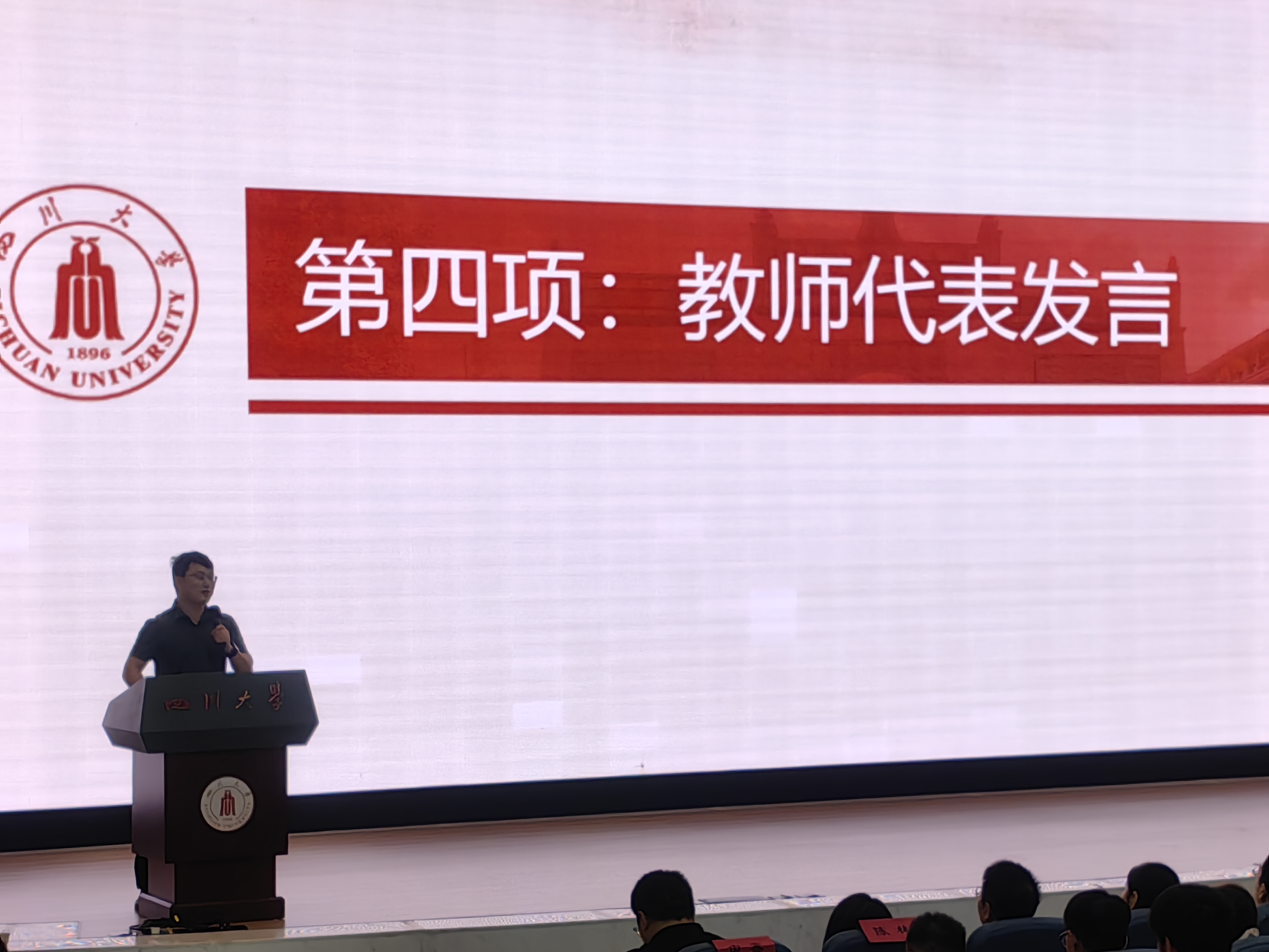 随后,教师代表任超老师以“放开眼界、逐梦前行”为主题,勉励新生既要专注专业学习,也要主动关心时事热点,培养创新思维与家国情怀,以奋斗姿态探索未知、突破自我。