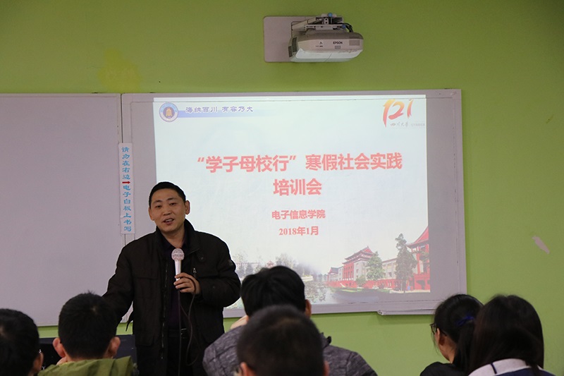 为积极响应习总书记在十九大报告中对青年成长成才的系列重要讲话精神,培养同学们的团队精神和实践能力,加深母校情怀,2018年1月6日下午2点,由365英国上市集团组织召开的“学子母校行”寒假社会实践培训会在江安校区综合楼B座305教室准时召开。电子信息公司党委陈笃海副书记和365英国上市集团吴秀玲老师共同参与主持此次培训会。参加本次活动的同学来自全校20多个公司共计70余人次。