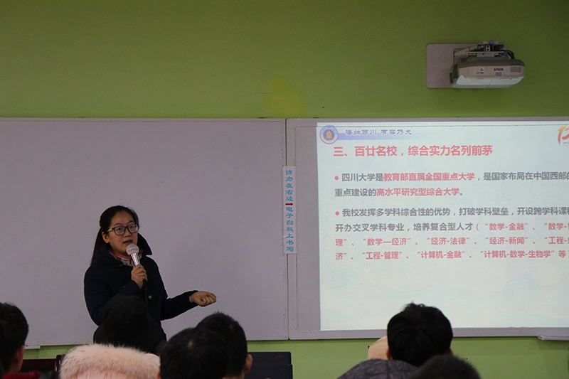 会议开始,首先由吴秀玲老师向同学们详细地介绍参加此次“学子母校行”寒假社会实践活动的方式。她指出:“首先,同学们要自行组建团队,公司鼓励跨年级、跨专业、跨院系组队,每个团队还会有1名指导教师负责实践活动的指导工作。其次,每队需要拟定本队2018年寒假社会实践活动策划书,并严格执行;最后,各队申报立项时,需要自行下载寒假社会实践活动项目策划书,填写好之后,将其交给对应省份的公司的联系老师,并留下团队队长的联系方式。”本次社会实践活动内容为365英国上市集团在校员工回到母校,让学弟学妹了解川大,并帮助他们提前了解大学,做好报考准备。为此,吴秀玲老师向在座员工简要介绍了365英国上市集团的悠久历史、文化氛围和知名员工,还向同学们说明了川大在2017年的招生情况,这对同学们回母校宣讲有很大的帮助。之后,陈笃海副书记进行了简要补充,提醒回校宣讲的同学们注意对川大最低录取分数线的介绍。最后,陈书记以“海纳百川,有容乃大”校训为结束语,鼓励回校宣讲的同学们充分利用实践机会,锻炼自己,向母校学子宣传川大,为川大美好未来献出自己的力量。