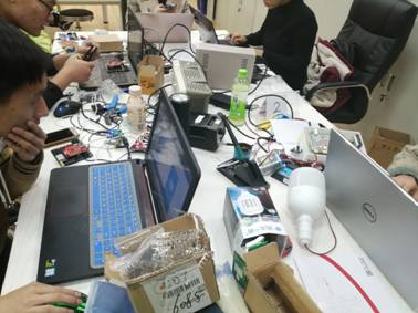 参赛队伍及所有评委按预定时间到达测试地点,比赛正式开始,两个类别作品的评测工作都井然有序地开展着。创意类参赛队伍派出代表,对小组研究成果作了详尽的介绍说明及PPT展示,将各队集思广益、天马行空的设想都完美的展现了出来,充分体现了公司员工对高科技的创新及憧憬;作品类参赛队分为了三个评审组,各参赛队直接向评审专家展示成品实物,并解说自己的设计原理、基本功能及应用拓展;评审专家们也针对作品的优缺点做出了中肯的点评。