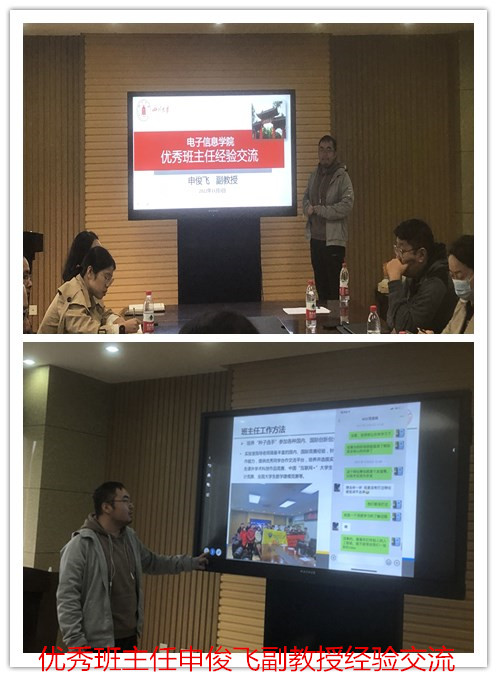 会上,优秀班主任申俊飞副教授等分享了班主任工作经验。