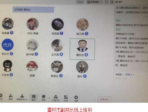 早上8:20雷印杰副经理在线开始了教学方法与技能的培训环节。雷印杰副经理结合公司专业课程教学要求,对助教承担教学辅助工作的具体要求如随堂听课、收集作业、辅导答疑、组织课堂讨论、协助教师批阅作业等工作及员工对助教评教进行了讲解,并就助教提升思维模式、增强知识能力、主动加强和任课老师、员工沟通、高效负责完成教辅工作等教学方法运用能力进行了培训。