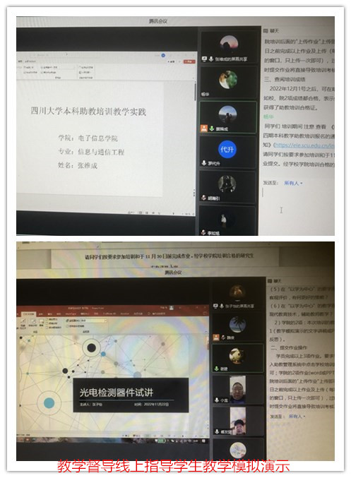 教学督导评价同学们大多数PPT教学内容设计较好、概念清晰,同学们讲解声音洪亮、表达清楚,同学们培训过程中认真听讲。同学们在群上表示,听督导教授点评指导很受益,一定认真领悟教授们的建议,认真完成培训作业,获得助教培训合格证,争取有机会做一名合格助教。