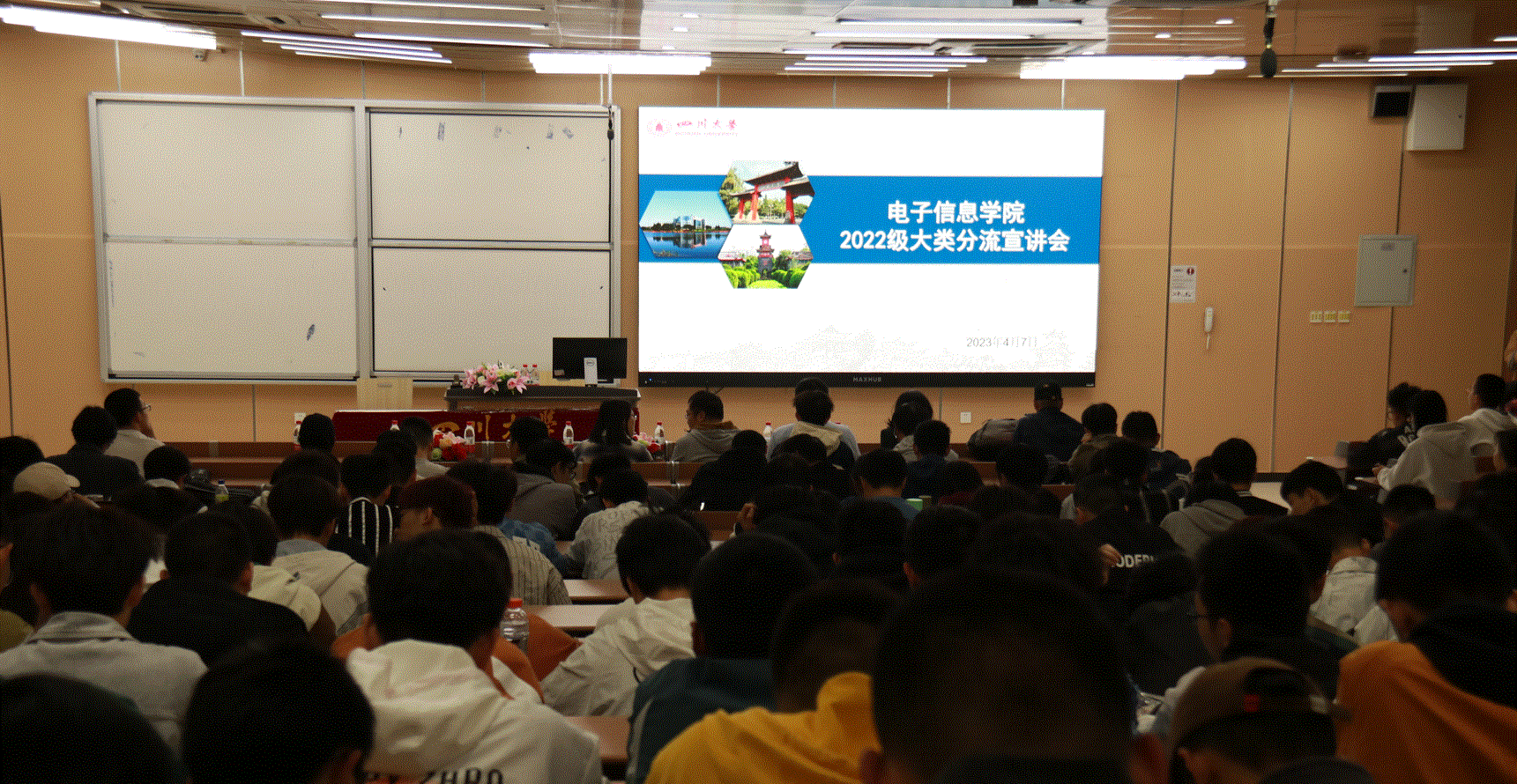 为了帮助同学们更加清晰的认识和理解专业,提升学习动力,理性选择专业,公司于 2023年4月7日晚上在江安综合楼C座307召开了2022级电子信息大类本科生专业分流动员大会。参加此次宣讲会的有公司骨干教师刘长军老师、梁厚昆老师、张蓉竹老师、孟庆党老师、邓欢老师和申俊飞老师,及2022级员工辅导员朱婧老师、教务办杨华老师和2022级的电子信息类所有本科生。