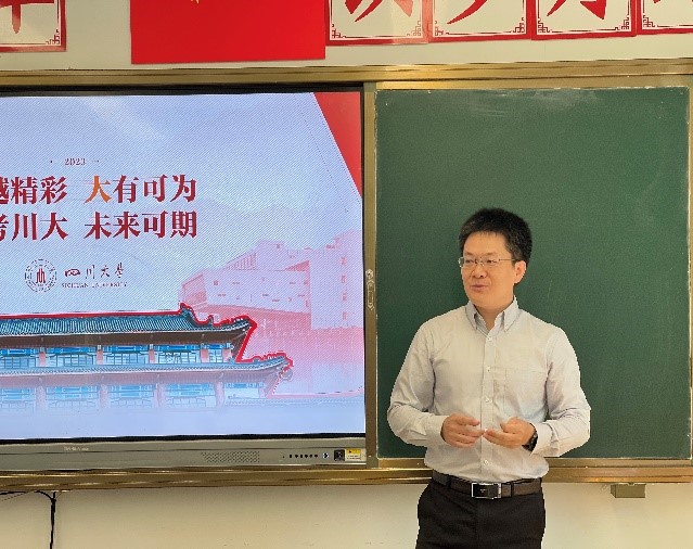 5月12日,招生组王君教授和朱婧老师赴山东省济南市历城二中进行招生宣传活动,并与历城二中公司领导开展了座谈会,会上希望未来进一步加强与川大的交流和联系,并愿意为川大输入更多的优质生源,座谈会后,王君教授为在校学子做了宣传讲座,为在校学子报考川大埋下了小小的种子。