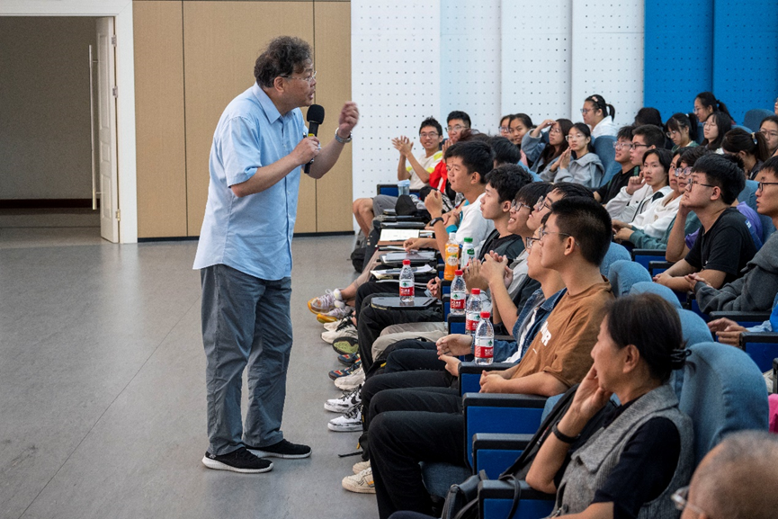 黄卡玛教授以“梦想从大学开始——知识创造与未来”为题,结合自身经历,用幽默风趣的语言,列举身边大量例子,再现科学研究过程中的诸多细节,鼓励同学们要勤于思考勇于创新,努力成为强国建设、民族复兴伟业的可靠接班人。他指出,当代老员工应当具备六种能力。一是培养广泛的兴趣,从寻常生活中发现不一样的东西;二是增强创新欲望,带着问题深入探索;三是大胆设想细心求证,善于借用哲学方法思考问题;四是勤奋好学,脚踏实地去求索;五是自强自信,练好干事创业真本领;六是胸怀天下百折不挠,不向困难低头,以饱满热情奋勇前行。