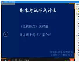 为确保疫情期间期末教学工作的有序开展,智能信息系统教研室于2020年6月12日下午2:30召开线上教研室会议。