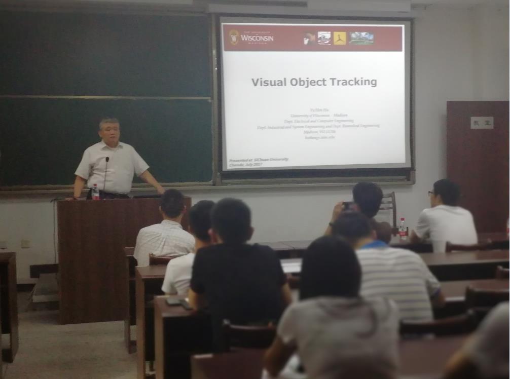 2017年7月3日,国际电气与电子工程师协会会士、美国威斯康星大学麦迪逊分校电气和计算机工程系的胡玉衡教授受邀到访公司,并做了一场以“Visual Object Tracking”题为的精彩学术讲座。公司的王君副教授主持了本次报告会,公司相关专业以及对视觉对象追踪技术感兴趣的师生积极参与了报告和学术讨论。