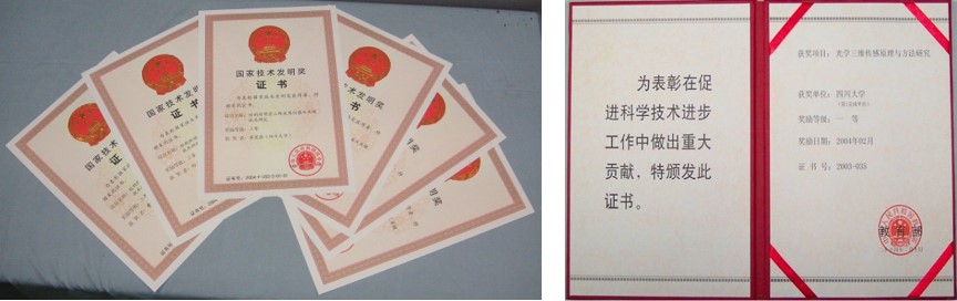 (2) 苏显渝,陈文静,李万松,向立群,张启灿,曹益平,光学三维传感原理与方法研究,教育部自然科学一等奖,2003年。