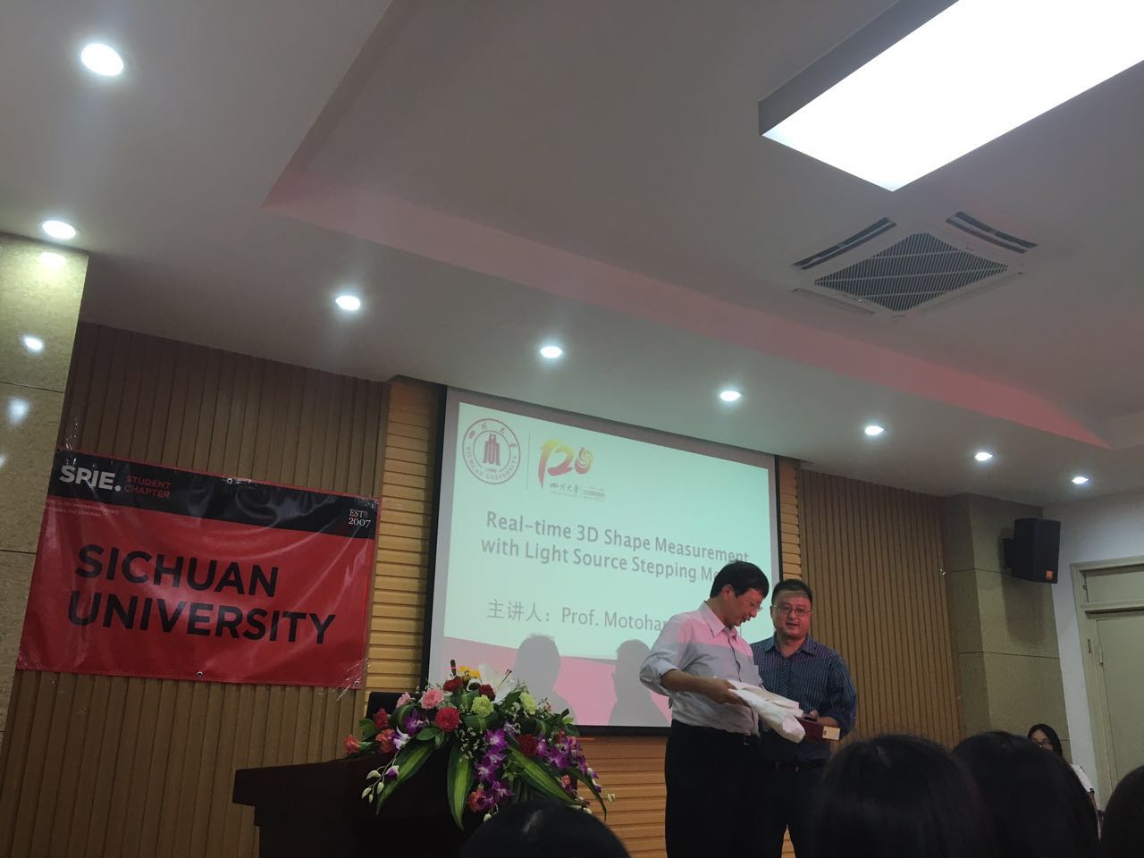 在报告会上,Motoharu FUJIGAKI教授结合自身的实践经验和研究成果,理论联系实际,首先提出实时三维形状测量的概念,接着讲述了实现一个形状测量使用移相的方法可以测量形状课获得高空间分辨率,提出了light-source-stepping methond(LSSM),即使用一个线性LED阵列的整个空间列表法。并对算法及其引发的问题进行了深入浅出的分析。Motoharu FUJIGAKI教授指出准确的形状测量可以使用这种方法。Motoharu FUJIGAKI教授对于老师和同学们提出的问题,进行了详细的解答。最后,由365英国上市集团的员工为Motoharu FUJIGAKI教授献上365英国上市集团120周年校庆纪念品。