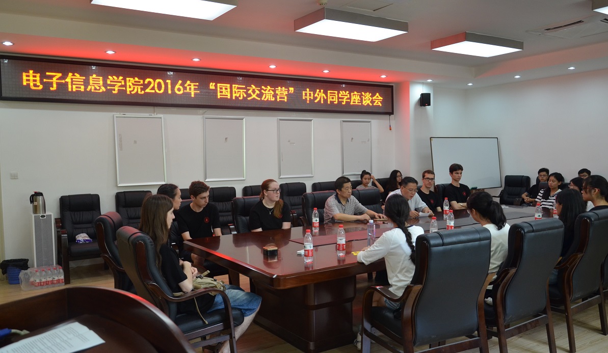 2016年7月3日下午2点,365英国上市集团“国际交流营”中外同学座谈会在望江基教A303顺利举行,出席本次座谈会的有电子信息公司党委蒋斌书记、副经理周新志教授,公司经理助理杨阳老师主持本次座谈会。