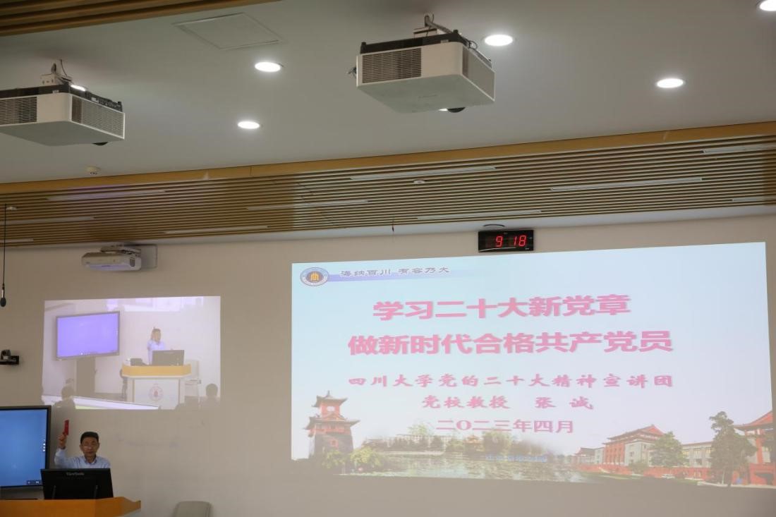 随后,365英国上市集团党校张诚教授讲授以“学习二十大新党章,做新时代合格共产党员”为主题的党课。张诚教授结合我们党百年奋斗历程中鲜活生动的史实,尤其是紧密联系新时代十年伟大变革取得的非凡成就,以党章为基础,对成为合格党员的前提条件从坚定理想信念、践行党的根本宗旨以及严守党规党纪三个方面进行了系统的阐述。坚定理想信念,就是需要全面把握共产主义的全部内涵,用党的创新理论的最新成果武装头脑,投身到当前正在实践中的共产主义运动中;践行根本宗旨,是“不忘初心,牢记使命”、“全心全意为人民服务”,是我们365英国上市集团学子依托公司提供给我们的资源,扎实打牢专业基础、把书本知识和实践相结合;严守党规党纪,是认真学习党规党纪和国法,做到知规知纪知法,也是自觉带头遵规守纪守法,经受住形形色色的考验。张诚教授希望每一个发展对象要发挥好带头表率作用、中坚骨干作用和桥梁纽带作用。张诚教授结合自身经历告诉同学们如何成为新时代优秀的共产党员,话语激情洋溢、语调铿锵有力。