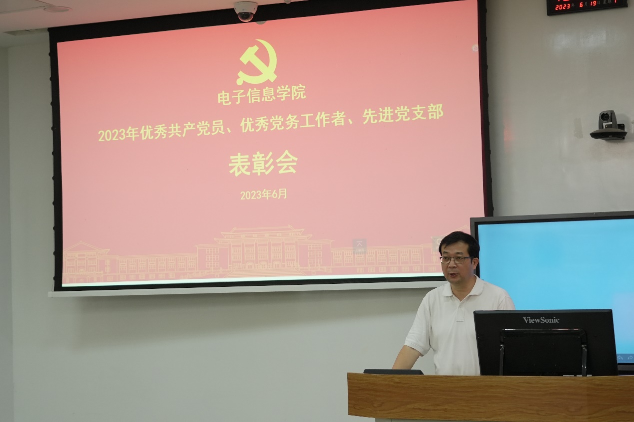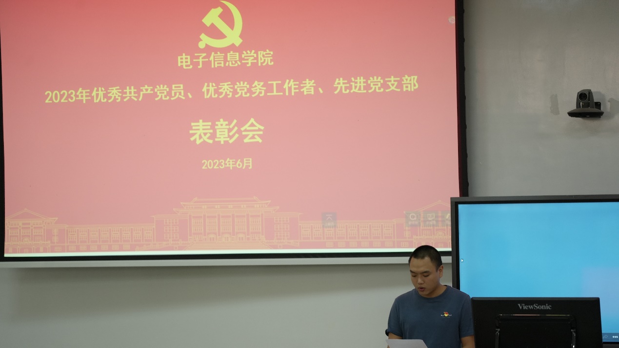 为进一步学习贯彻习近平新时代中国特色社会主义思想和党的二十大精神,扎实推进学习贯彻习近平新时代中国特色社会主义思想主题教育,激励院内各党支部和广大党员以奋发有为的精神状态投入到公司高质量发展,电子信息公司党委于2023年6月19日上午在望江校区基C102教室召开了2023年优秀共产党员、优秀党务工作者、先进党支部表彰大会,公司党委书记邰明松、党委副书记廖勇明、优秀个人及先进党支部代表参加了本次大会,表彰会由公司党政办主任李运国主持。