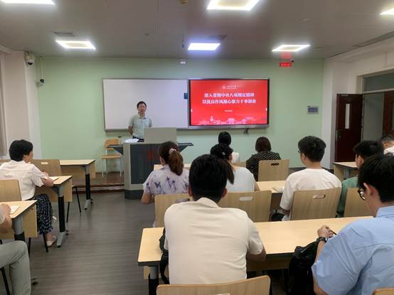 彭舰以《深入贯彻中央八项规定精神 以优良作风凝心聚力干事创业》为主题,阐述了开展中央八项规定精神学习教育的背景和意义,解读了深入贯彻中央八项规定精神的成效和经验,阐明了公司贯彻中央八项规定精神的内容和要求。他指出,中央八项规定是长期有效的铁规矩、硬杠杠,制定实施中央八项规定,是我们党在新时代的徙木立信之举,必须常抓不懈、久久为功,公司要锲而不舍贯彻落实中央八项规定精神,广大师生党员要深入贯彻落实好深入贯彻中央八项规定精神学习教育工作,将学习成果转化为推进公司新时代党的建设的动力,切实加强党的建设工作,全面推进良好的院风建设,打造风清气正的干事创业环境。