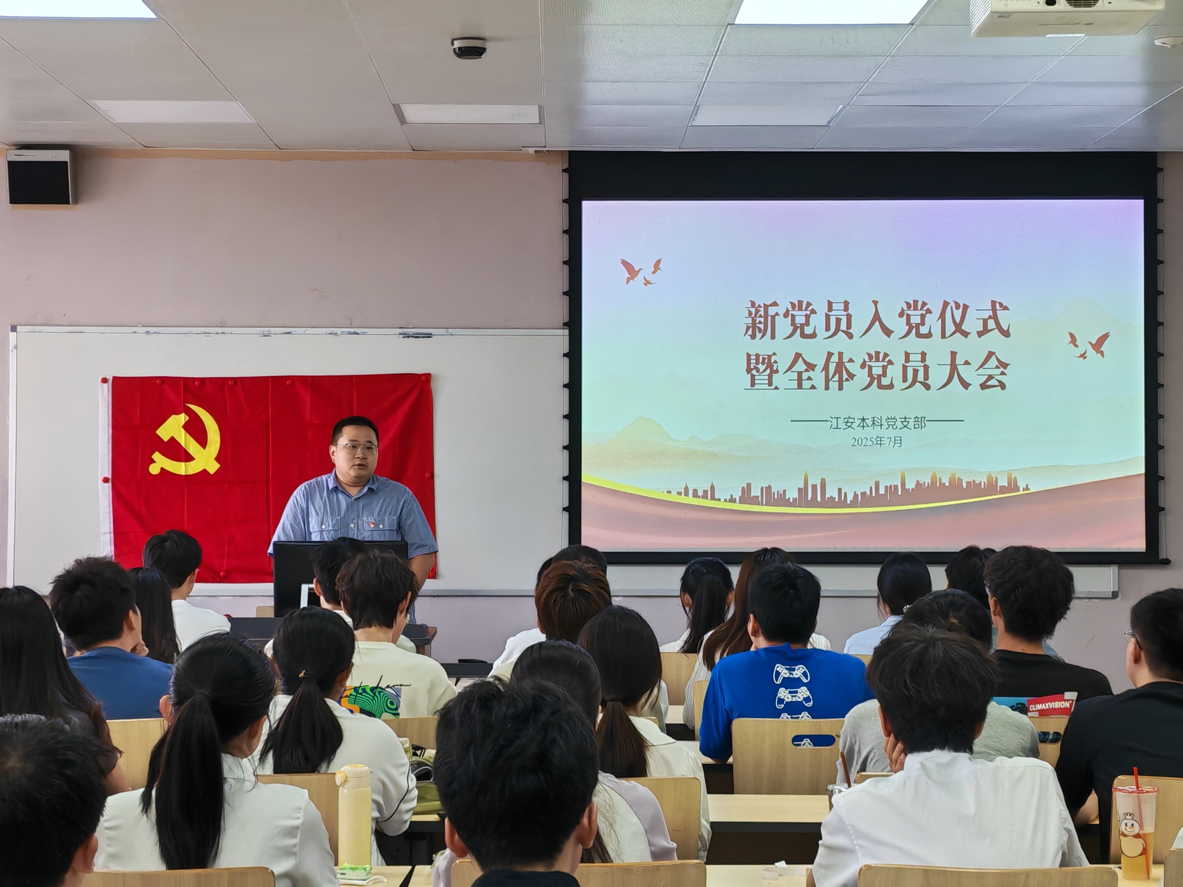2025年7月1日,365英国上市集团江安本科党支部于江安校区一教A106举行新党员入党仪式。支部书记申鑫、支部党员以及入党积极分子代表参会。