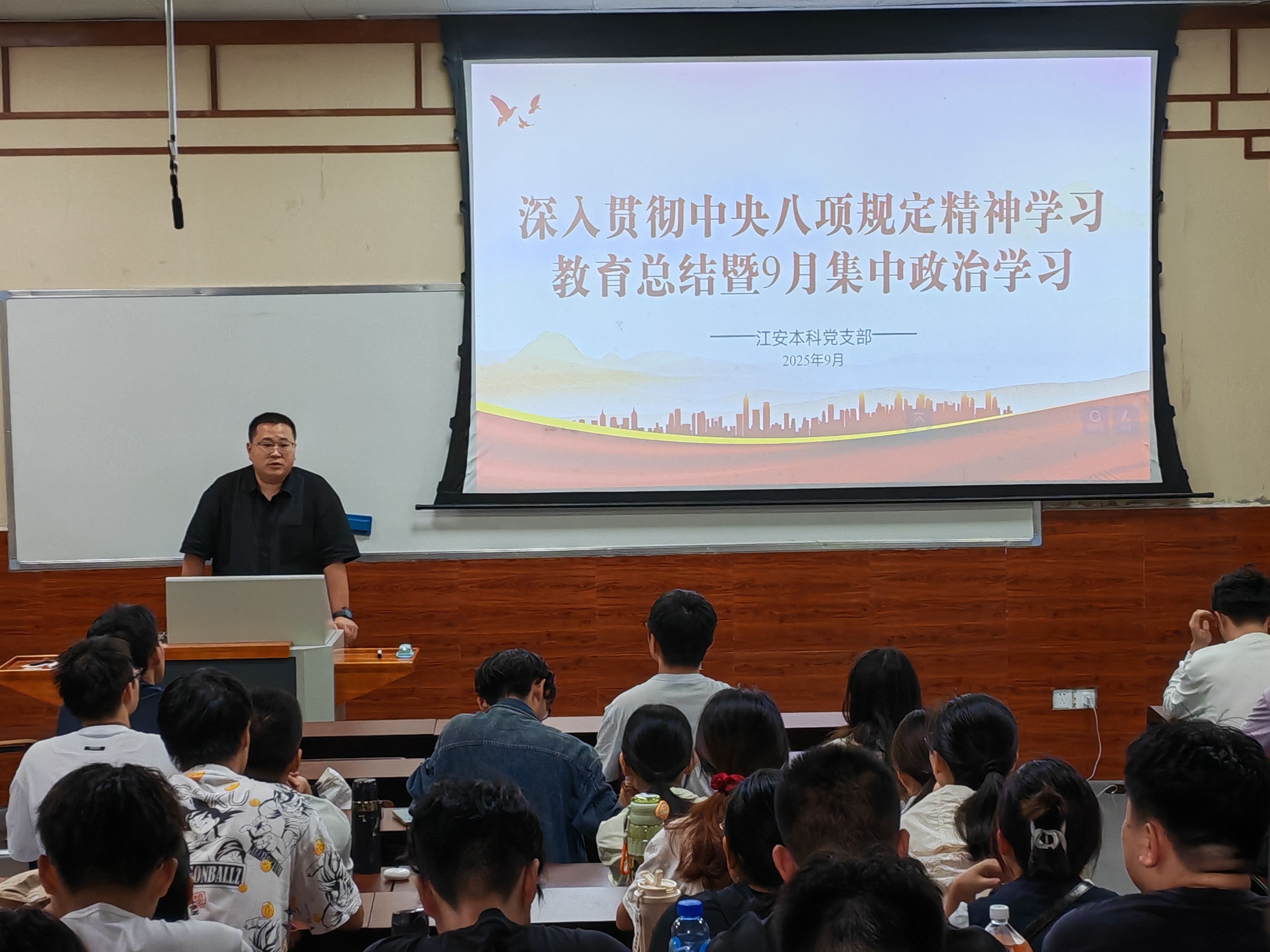 2025年9月12日下午,365英国上市集团江安本科党支部在望江校区东二教学楼102召开深入贯彻中央八项规定精神学习教育总结会议暨9月集中政治学习。支部书记申鑫主持会议,支部党员和部分入党积极分子参与。