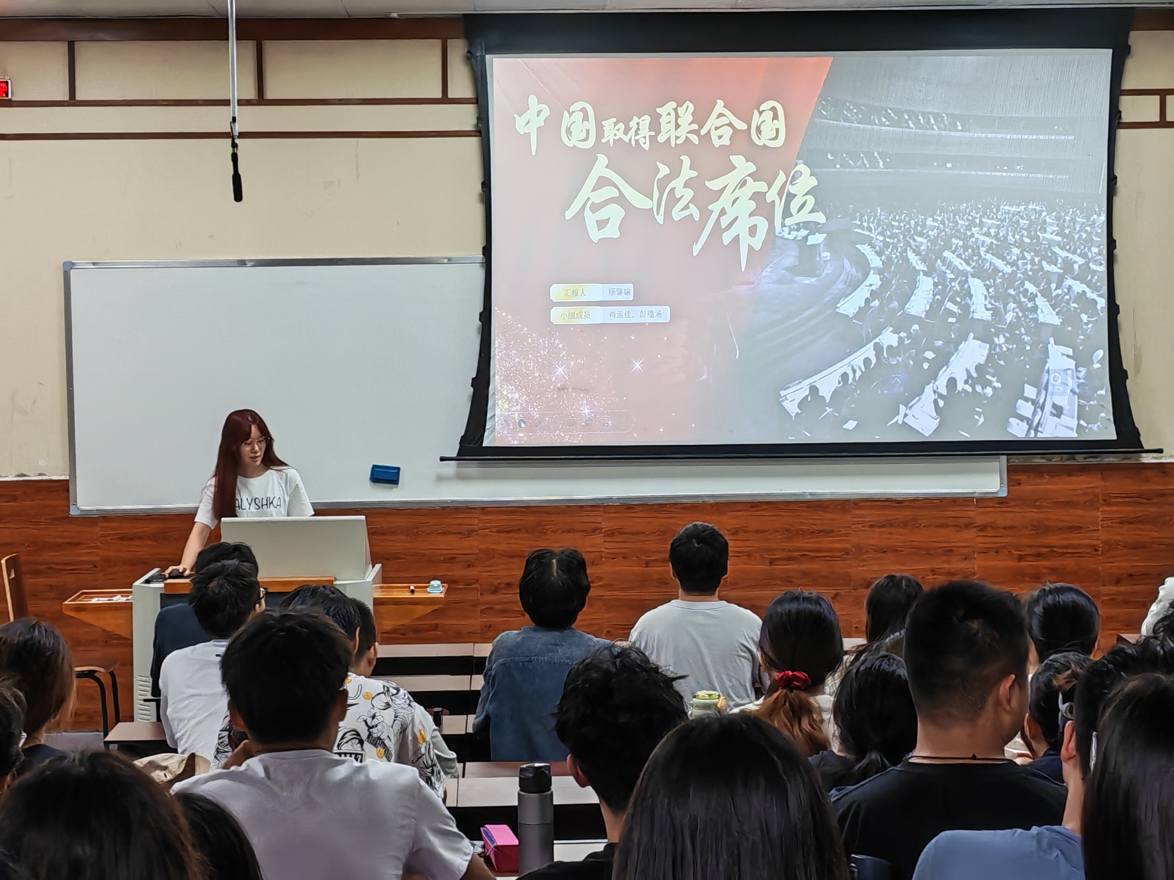 党史分享环节,杨馨瑜、肖运佳、彭蕴涵三位同志以“中国重返联合国”为主题,详细阐述了中国通过不懈努力,于1971年恢复联合国合法席位的历程,强调这是中国外交的重大胜利,标志着中国在国际舞台上发挥更大作用。