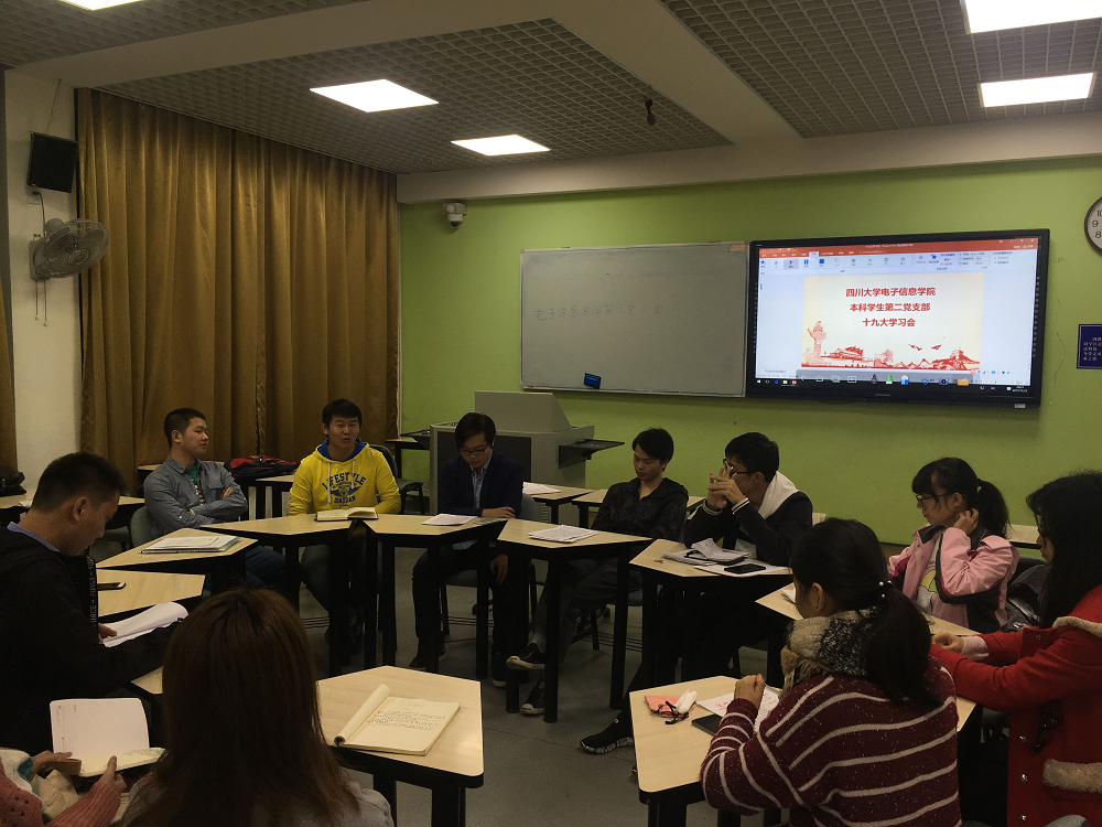 2017年11月11日,2014级本科第二党支部关于“十九大”学习的党组织生活在望江三教112教室开展,本次组织活动针对十九大的关键词“不忘初心,牢记使命”,对社会主义新时代、党员党性等内容进行了学习和讨论,支部全体党员积极参与并感受了党组织生活。