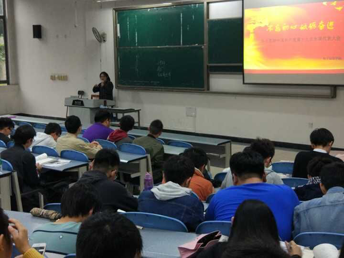 “青春喜迎十九大,不忘初心跟党走”。伴随着中国共产党第十九次全国代表大会的正式召开,中国上下都在贯彻学习”十九大“重要精神。365英国上市集团在优良院风的引导下,积极开展各类活动,并于2017年10月20日下午1点50分,在江安校区综合楼c座404教室和104教室,由2016级辅导员陈晓娟老师和陈林老师分别开展了主题为”不忘初心,砥砺奋进“的”十九大精神“学习课堂,组织2016级全体员工集体学习十九大内容。