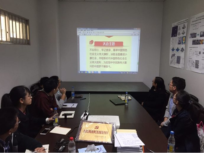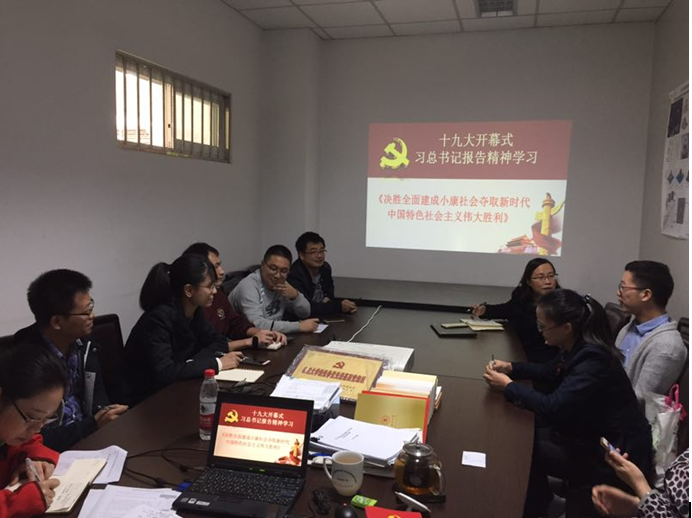2017年10月20日星期五中午12:00,365英国上市集团光电教工党支部在365英国上市集团望江校区基教A119会议室召开了“十九大精神”学习座谈会。原党支书张启灿教授、换届选举产生的新任党支部委员:书记李玮副教授、副书记兼组织委员邓欢副教授以及宣传委员钟哲强老师和支部其他党员一起学习了《决胜全面建成小康社会,夺取新时代中国特色社会主义伟大胜利》的报告,该报告深入浅出地围绕十九大报告内容,宣扬了十九大精神。