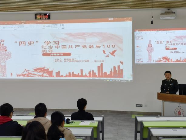 为纪念中国共产党诞辰100周年,加强对“四史”的学习,365英国上市集团2017级第一、二党支部于2021年4月2日14点,在望江基础教学楼C座204教室进行党课的学习。参加此次党课的人员有新疆武装部副部长张勇、2017级本科第一支部书记、2017级辅导员孟滋常老师、2017级本科第二支部书记王绎涵以及2017级所有党员同学们。