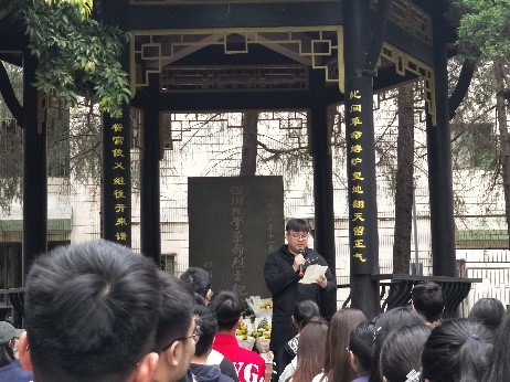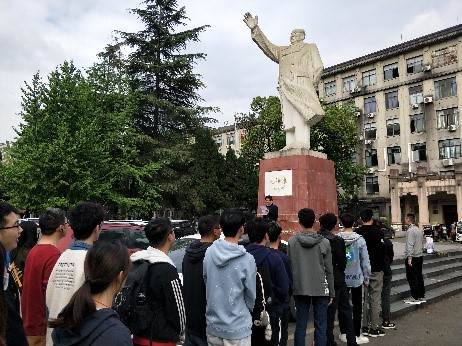 2021年4月2日下午,2017级“缅怀革命先烈”活动于望江校区东区毛泽东主席纪念雕像前举行。2017级辅导员孟滋常老师,2017级就业指导老师谢明老师以及2017级全体同学参加了本次活动。