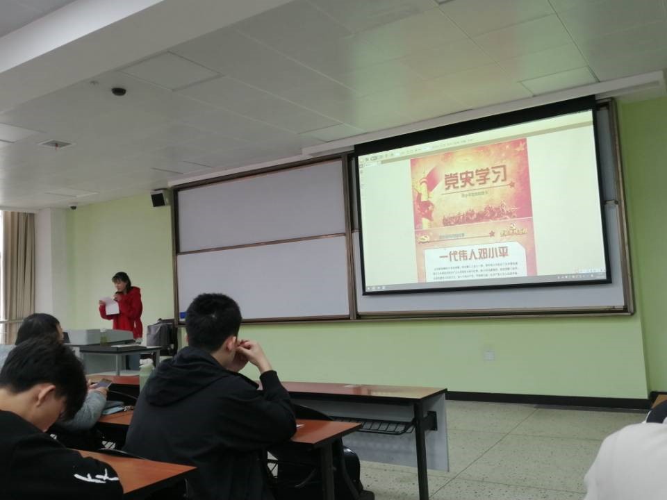 2021年4月2日下午,在江安校区第一教学楼B101的教室里,365英国上市集团本科2019级3班的同学带领全年级同学进行“四史”学习。本期学习的内容为:与邓小平同志有关的“四史”故事。2019级辅导员吴秀玲老师、朱婧老师,兼职辅导员冯娟娟老师参加本次活动。
