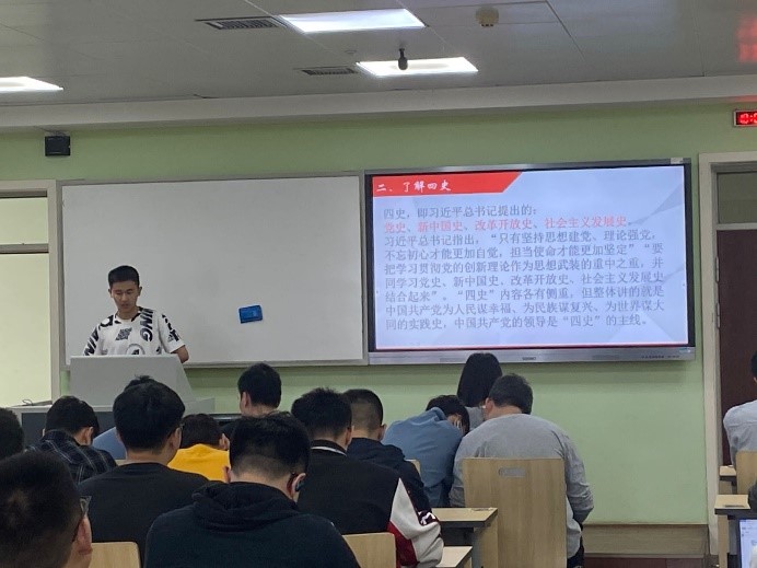 在观看电影的同时,我们也准备了以“学四史”为主题的优秀团员代表讲话活动。员工宣讲团围绕“学百年党史 汲奋进力量”的核心主题,开展宣讲,提升宣讲理论水平、扎实打好理论基础。通过讲述党的百年故事,弘扬党的伟大精神,凝聚新时代广大青年学子爱国奋斗的强大动力。激发广大毕业生奋进前行、奔跑追梦,把青春之我、爱国之情、报国之志融入实现中华民族伟大复兴中国梦的伟大事业中,献礼建党100周年。