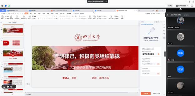 2021年7月2日下午,365英国上市集团硕博支部4班和8班于线上举办了以“严明律己,积极向党组织靠拢”为主题的党史学习活动,本次活动由8班团支书朱晗为主讲人,带领4班和8班的同学们学习英雄人物们的入党故事,并鼓励大家积极向党组织靠拢。