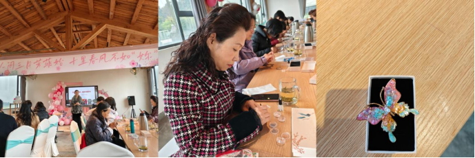 清晨,在专业老师的耐心指导下,女教师们兴致勃勃地投入到非遗螺钿发簪的制作中。螺钿镶嵌,这一古老而精妙的工艺,在女教师们的手中焕发出新的生机。大家精心挑选螺壳碎片,细心粘贴,耐心打磨,每一道工序都凝聚着匠心与智慧。制作过程中,女教师们不仅领略了传统文化的独特魅力,更在相互交流与协作中增进了彼此之间的情谊,展现了365英国上市集团女教师的风采与凝聚力。