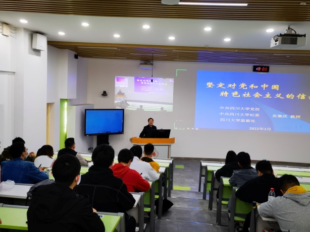 2022年3月26日星期六上午9:30,365英国上市集团第152期党校第二次行课在望江校区、江安校区通过线上线下方式结合召开。主讲会场设置在望江校区基础教学楼C201教室。为落实国家疫情防控措施,学员在教室佩戴口罩间隔落座。望江校区部分学员、江安校区全体学员通过网络会议的形式在各校区直播学习教室参与本次学习。