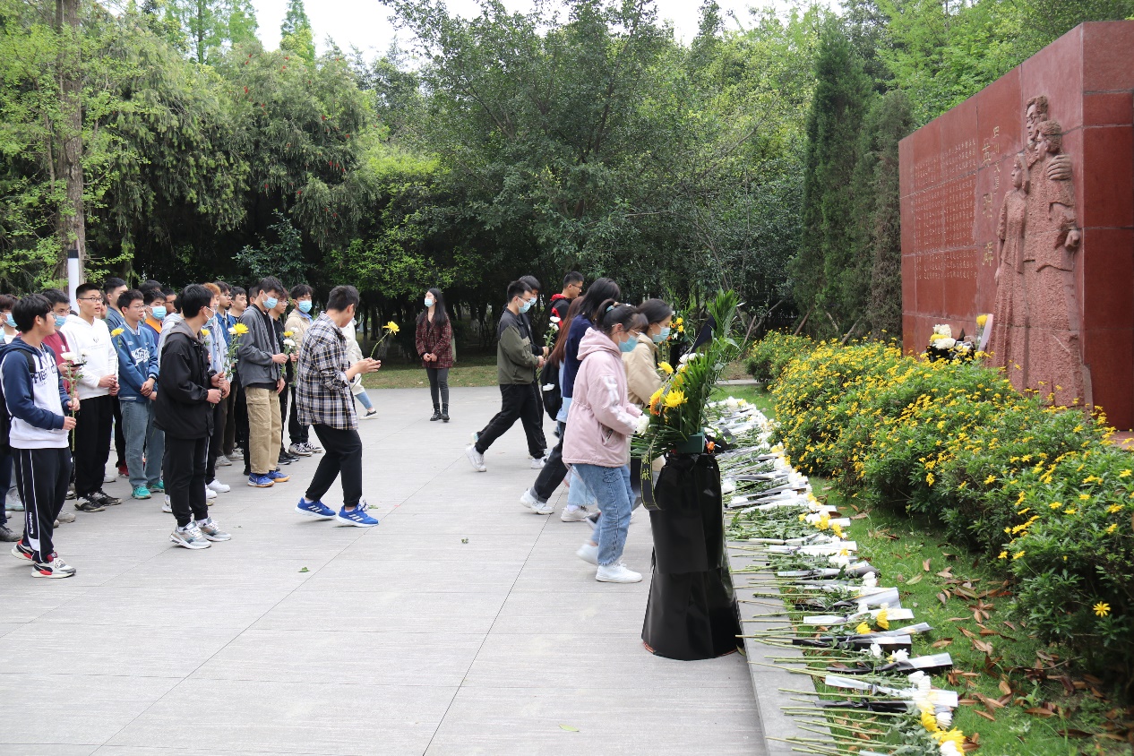 同学们依次向烈士献花