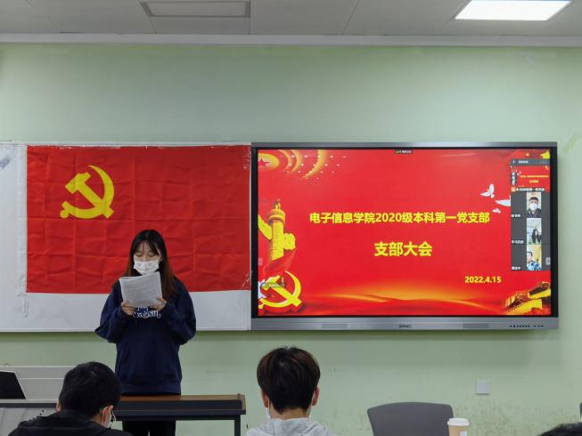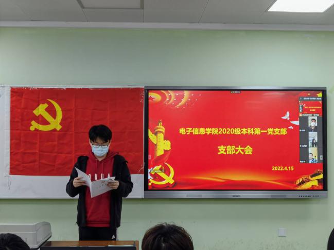 2022年4月15日下午15时至17时,2020级本科第一党支部支部大会在一教D102召开。2020级辅导员兼支部书记陈晓娟老师主持了本次会议,并发表重要讲话。