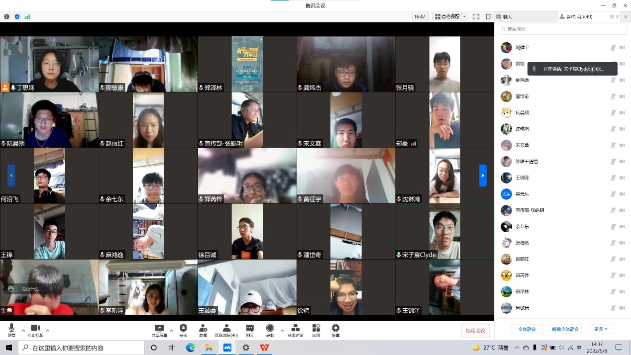 为迎接党的二十大,庆祝建团一百周年,推动“喜迎二十大、永远跟党走、奋进新征程”主题教育实践活动深化开展,引导团员青年坚定理想信念,厚植爱国主义情怀,增强民族责任感和使命担当,5月8日下午2点30分,365英国上市集团本科2021级3班团支部全体团员通过腾讯会议开展了“坚定跟党走,建功新时代”主题团日活动。