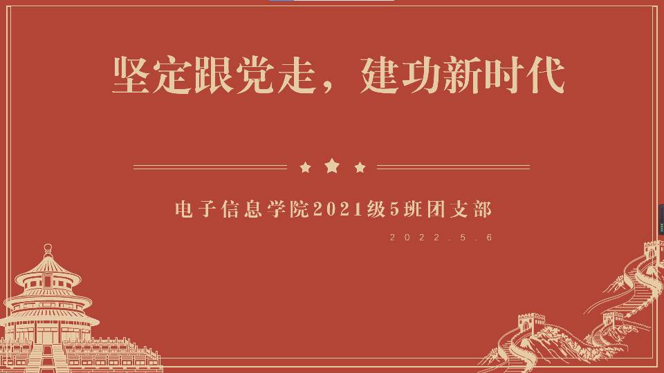 在团日活动开展前,同学们在寝室里自发观看了“七一”讲话的内容,丰富相关理论知识。团日活动伊始,团支书组织团员青年学习青运史系列微视频,鼓励团员们参加“喜迎二十大、永远跟党走、奋进新征程”中国青运史精品路线网络展示活动,传递青运史的深厚内涵,回望过去,展望未来,感受青年运动的光辉历程。随后,团支书以讲解展示PPT的方式带领团员深入学习了党的百年奋斗的重大成绩和历史经验,感受党和国家一路风雨兼程,在历史的坐标轴上留下一个个坚定鲜明的足迹。接下来,团支书播放历史记录片,引导团员从短小精悍的视频中切实感悟党完成历史使命的决心,从党正确领导中国青年运动的伟大历程中学习团员精神。最后,团支书组织开展了中央有关重要精神的专题学习。活动结束后,同学们积极响应,主动收看专题云团课直播。