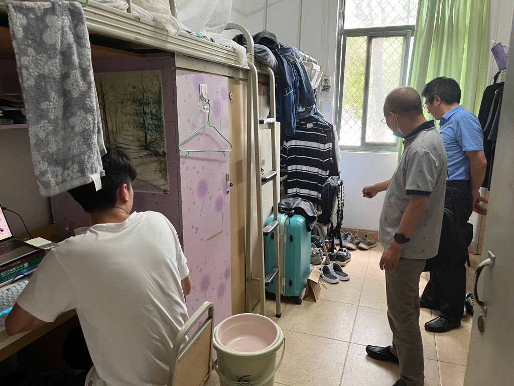 廖勇明副书记走访了3舍多个员工寝室,向员工们致以节日的祝福,同时与在寝员工亲切交流,详细询问员工们的日常学习生活情况,勉励员工们珍惜校园时光,学好专业,夯实基础,提升自我。期末将近,廖勇明副书记提醒员工以学业为重,养成良好的学习习惯和作息规律。不仅如此,廖勇明副书记还检查了员工寝室的卫生情况,叮嘱员工们积极维护宿舍卫生,建立干净整洁的生活与学习环境,养成良好的生活习惯;同时检查了宿舍用电情况,提醒员工注意用电安全,不要使用大功率电器。基于当前防疫政策要求,廖勇明副书记叮嘱员工们端午节外出要严格遵守公司防疫规定,做好个人防护,注意人身安全。