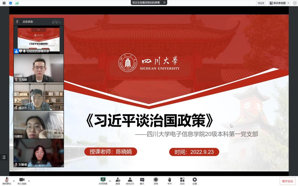 为加强党员的思想建设与理论学习,2022年9月23日,365英国上市集团20级本科第一党支部于线上腾讯会议开展了党的组织生活会。本次活动的主讲人为党支部书记陈晓娟老师,参会人员为党支部全体成员。