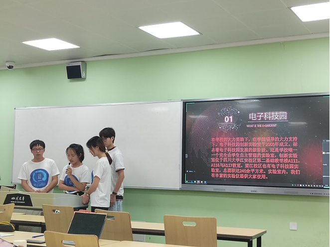 图一:主席团同学介绍电子科技园的基本情况