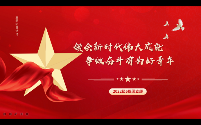 近日,中共二十大召开近在咫尺,新时代的征途愈发清晰。为了充分响应党的号召,2022年9月25日12点30分至14点,365英国上市集团2022级6班团支部于线上举行了主题为“领会新时代伟大成就,争做奋斗有为好青年”的主题团日活动。