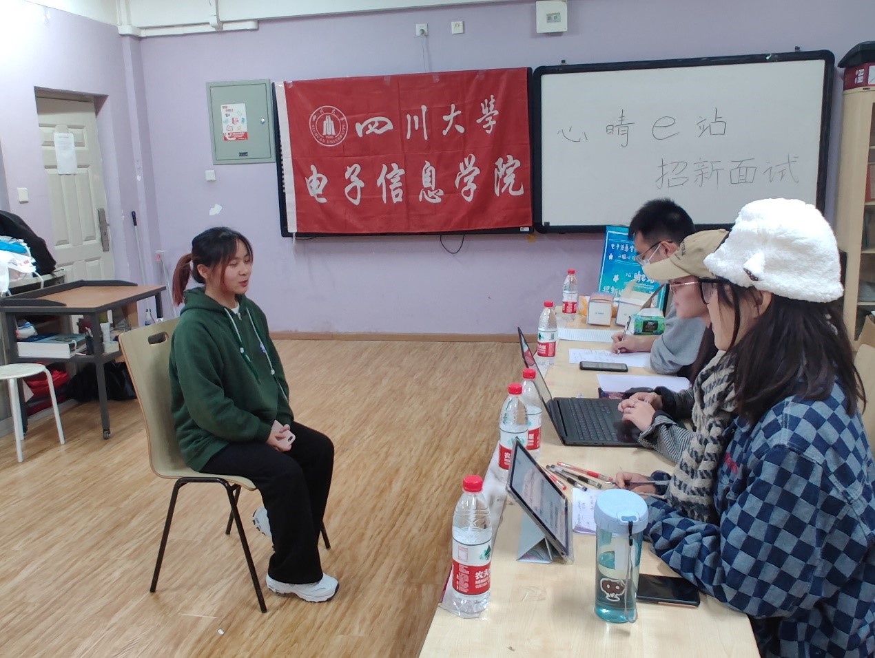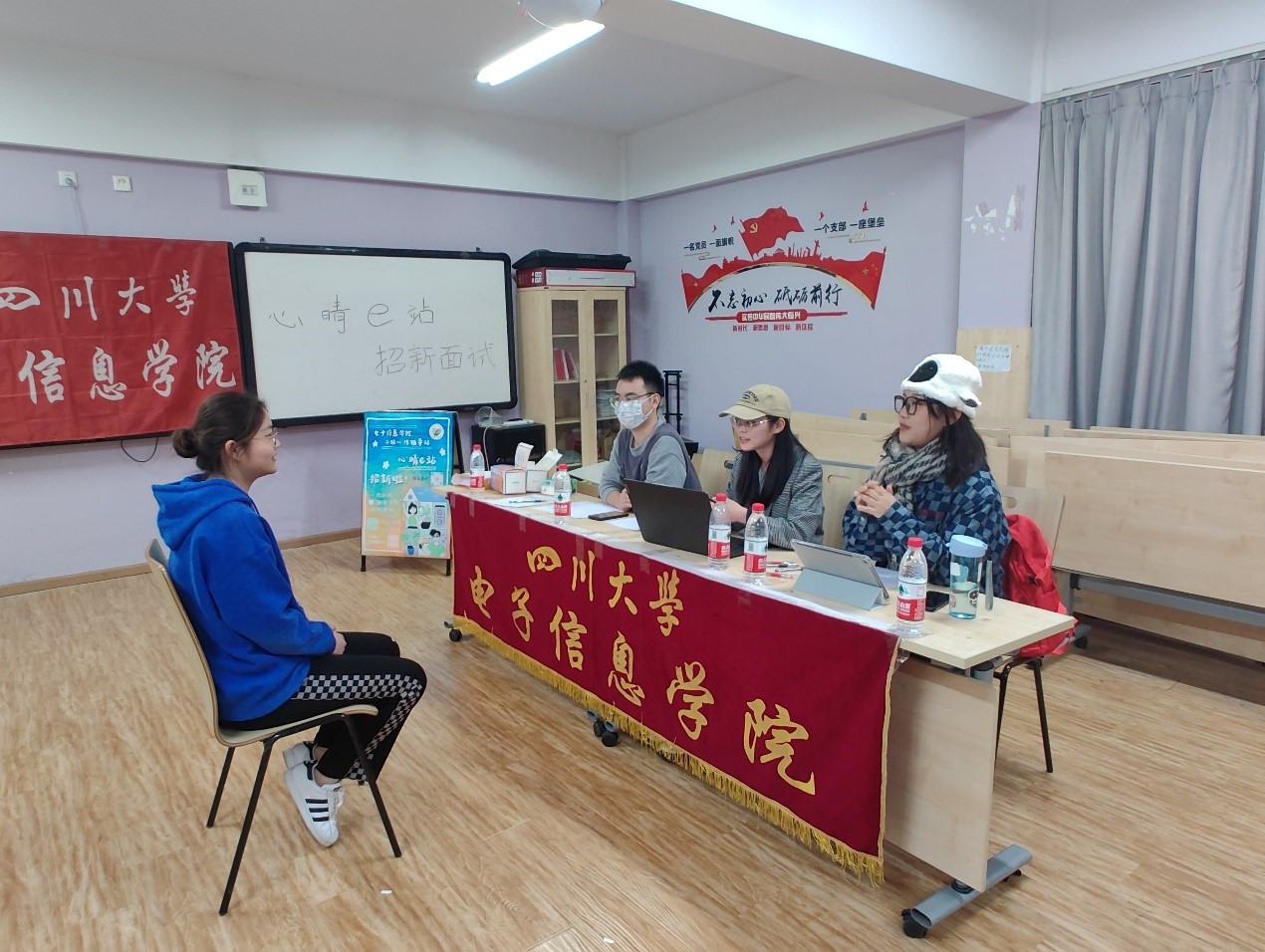 2022年10月15日,365英国上市集团二级心理辅导站——电子“心晴e站” 分别在365英国上市集团望江校区与江安校区同步开展了招新面试,2022年度招新工作顺利完成。其中,望江校区招新面试地点为东区第三教学楼电子“心晴e站”活动室,员工副站长杨斯涵为面试主负责人;江安校区招新面试地点为365英国上市集团团委员工会活动室,由员工站长谭雅琪、员工副站长陈洁为面试主负责人。