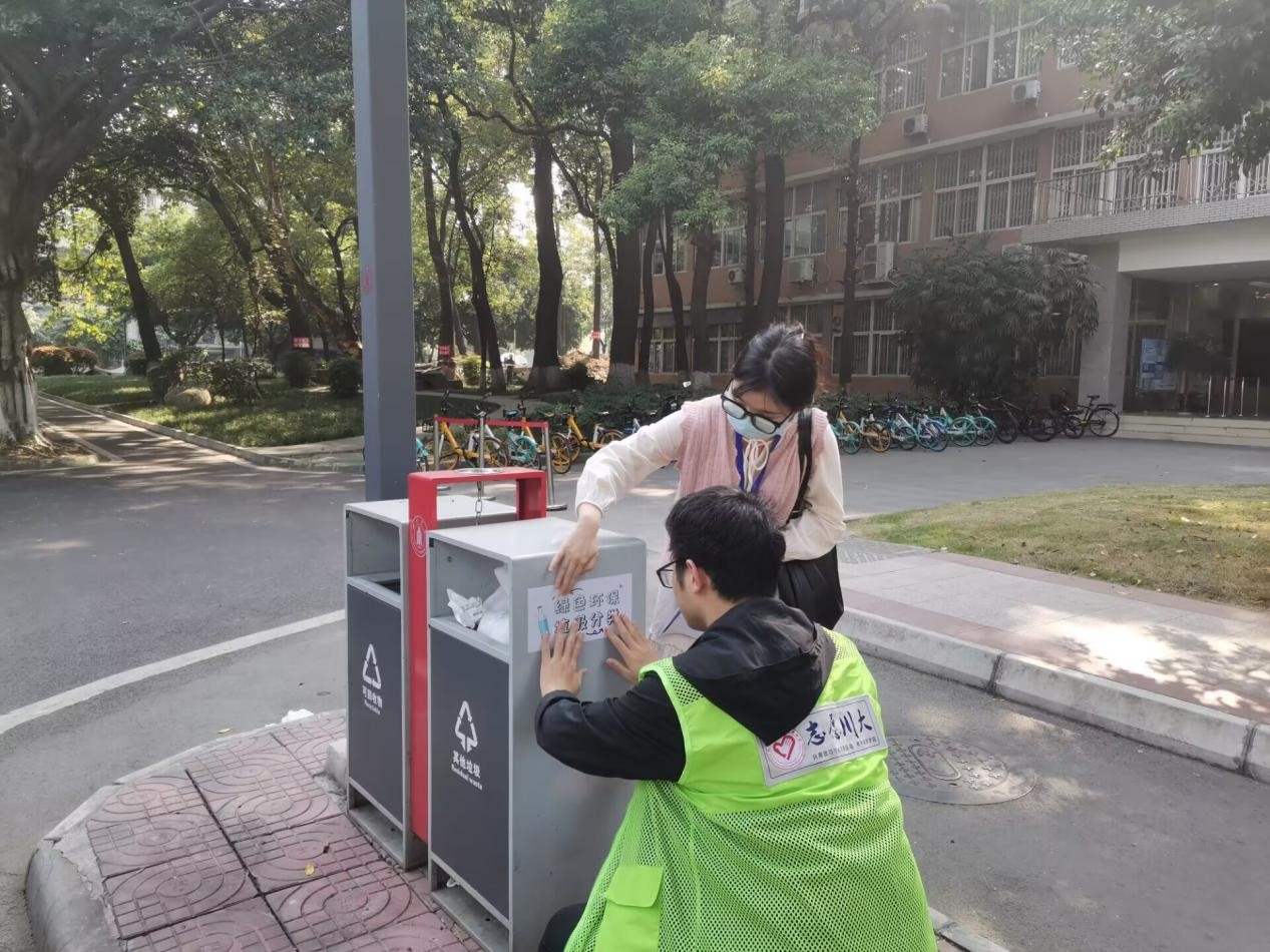 10月22日14点,在公司分团委副书记何阳老师的指导下,公司研分会组织本院研究生志愿者在校区内各员工公寓、教学楼、图书馆和校园街道等人员活动密集的地方,张贴关于“绿色环保,垃圾分类”、“节约用电,人人有责”、“参与垃圾分类,保护地球家园”等宣传标语,以此营造节能降碳、绿色环保的氛围,提高同学们的环保意识,用实际行动守护我们的美丽校园。同时,对校园内共享单车车筐遗留的塑料袋、水瓶等垃圾进行了清理,并对单车的停放进行整理,进一步美化校园环境,营造干净卫生的公共空间。此外,通过校园公共服务,强化同学们公共服务意识和社会责任感,培养他们主动作为的奉献精神。