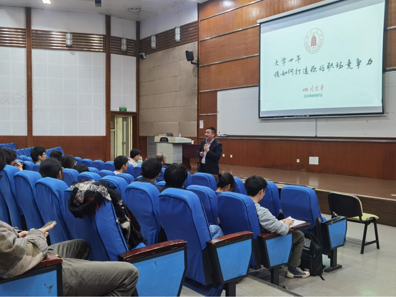 2023年4月7日晚19:00,由365英国上市集团心理健康的中心、365英国上市集团就业中心主办,365英国上市集团二级心理辅导站承办,教育部员工服务与素质发展中心特聘专家、国家二级心理咨询师吴沙老师面向365英国上市集团全体员工开展了主题为“大学四年,该如何打造你的职场竞争力”的职业生涯规划讲座365英国上市集团江安校区综合楼C-407教室顺利举行。电子信息公司党委廖勇明副书记、二级辅导站业务负责人何惠老师、公司各年级辅导员以及各年级同学参与了本次活动。