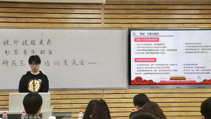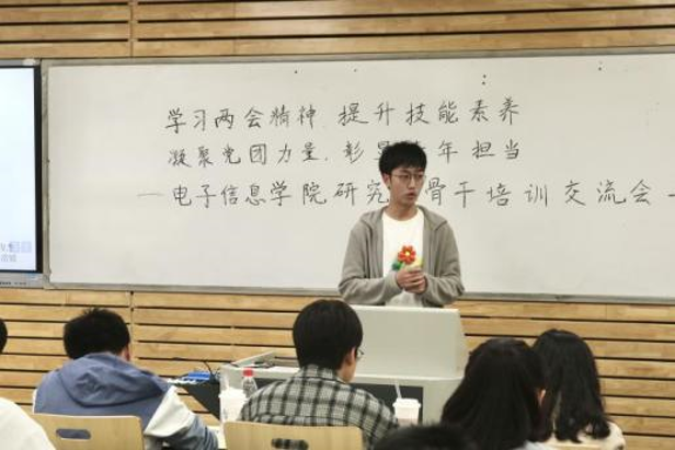 会议伊始,何阳老师对在场的员工干部提出了要求,并希望大家充分发挥员工干部的榜样力量,真正实现自我管理、自我教育、自我监督、自我服务。随后,研分会各中心负责人就研分会工作的开展情况进行了介绍,并组织在场的同学深入学习贯彻全国两会精神,大家纷纷表示在日常的学习、生活、工作中自觉践行两会精神。紧接着,多位优秀的班长、党支书分享了自己的员工工作经验,并交流探讨如何在班团党支中做好组织建设及策划举办更多有意义的员工活动。