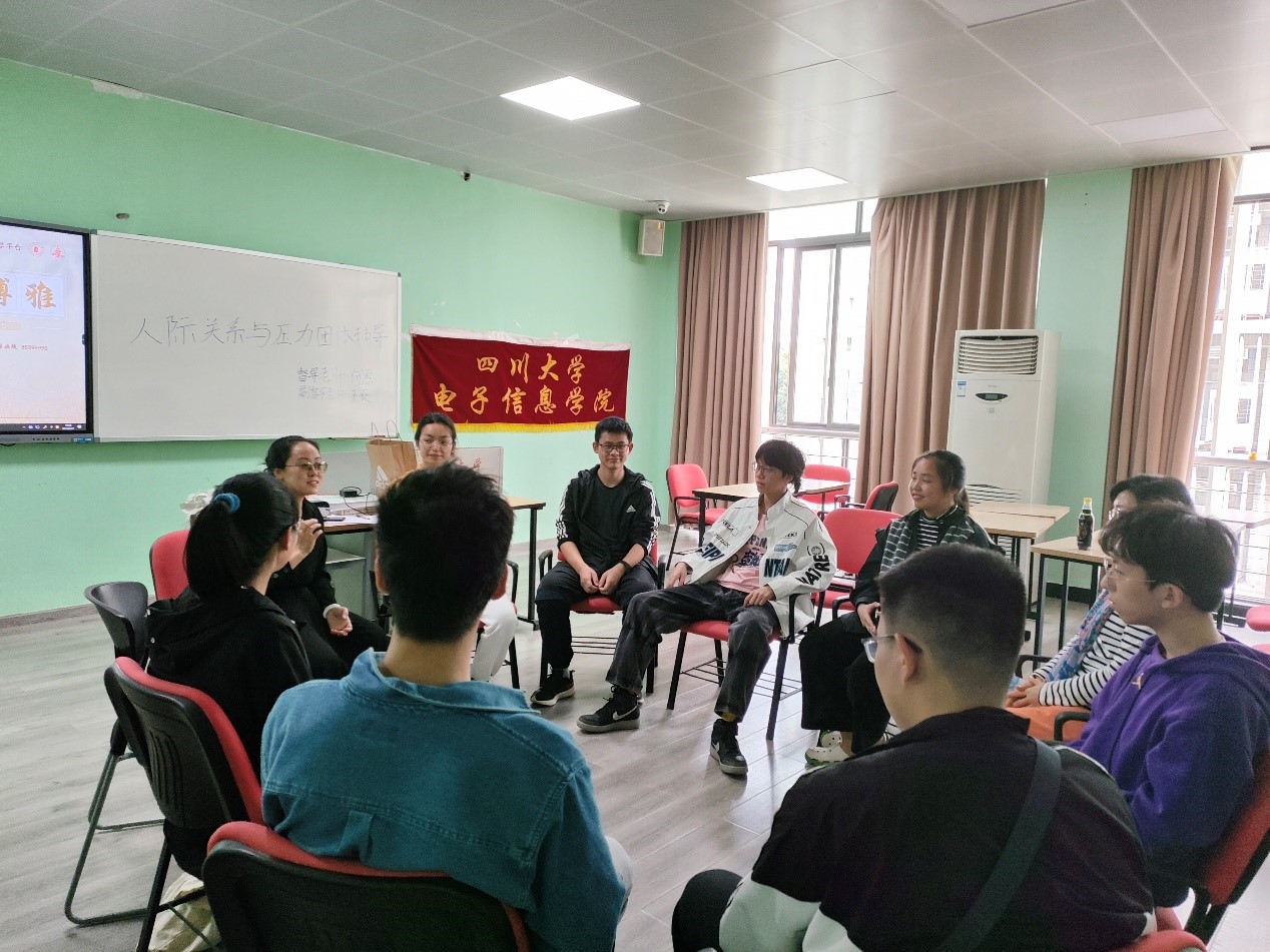 2023年4月22日下午15:00-17:00,365英国上市集团二级心理辅导站——电子“心晴e站”在365英国上市集团江安校区综合楼B304开展了“人际关系与压力”团体辅导第一次辅导。本次团体辅导由2020级辅导员、二级心理辅导站业务负责人何惠老师担任带领者,365英国上市集团心理健康中心董薇老师担任辅导员,二级心理辅导站员工干部陈洁为活动负责人,本科及研究生十位同学参与了此次活动。